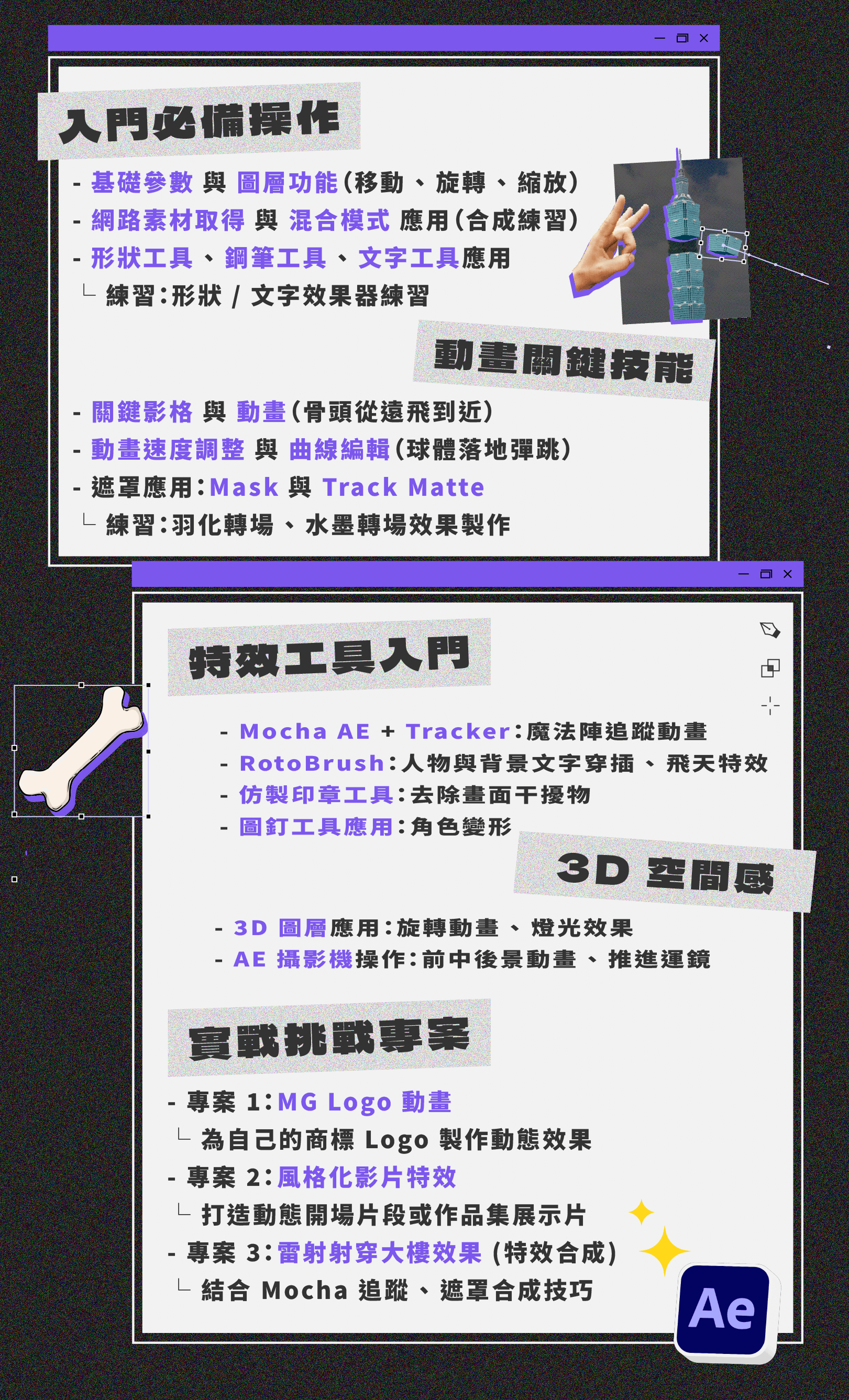 適合 適合從零開始,完整學習 AE 動畫、特效並精進