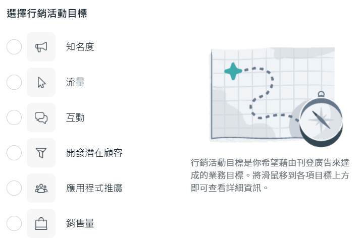 - 行銷活動(Campaign):設定廣告的整體目標。