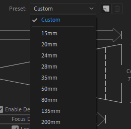 AE攝影機的焦距從15mm~200mm共有9種焦距可以做選擇,數字大小會影響視角大小與畫面的透視感