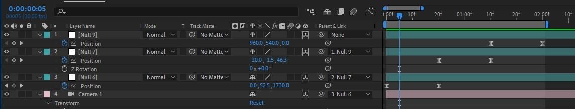 在設定關鍵幀時會建議先將Null的關鍵幀對齊,比較不會有空拍喔,設定好了之後,我們大致上的動態是這樣