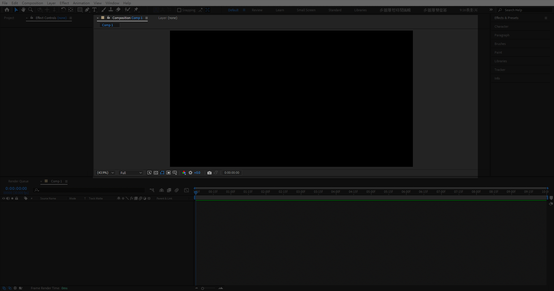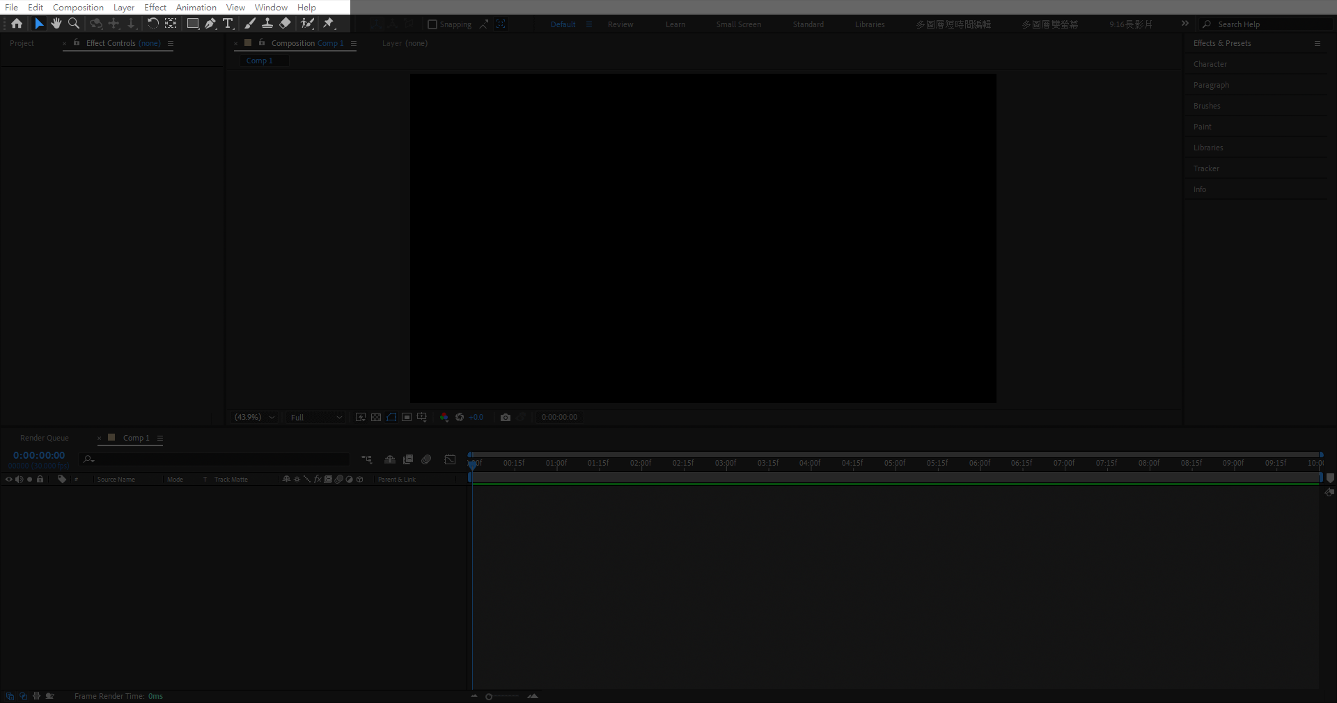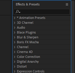 較常用的有 Effect & Preset 視窗,可以在裡面搜尋需要的特效並套用。