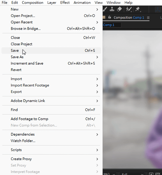 或是直接點擊 Project 視窗內的 Comp 來選取。