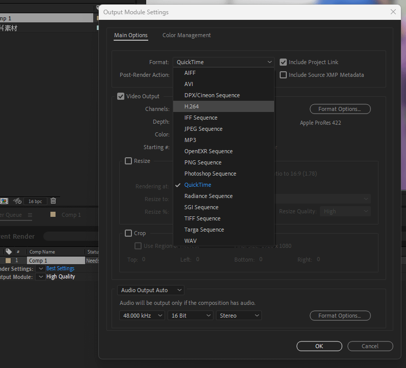 AE 輸出影片會以單個 Comp 為單位,