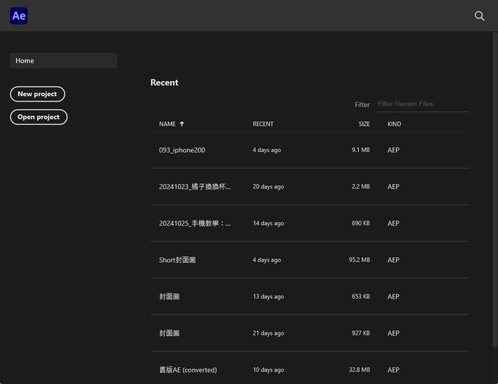 開開啟 AfterEffects (簡稱 AE) 之後會先跳出這樣的 Welcom 視窗,