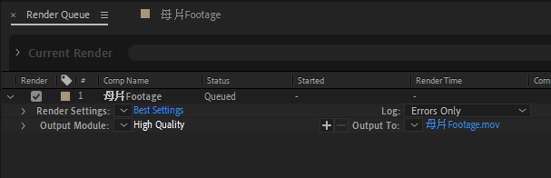 在 Render Queue 視窗的輸出影片下方找到 High Quality 選項。