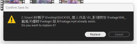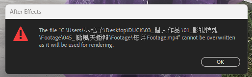 這代表你可能將輸出的影片取代到 AE 內正在使用的素材,