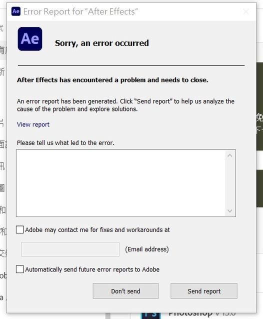 輸出影片之後 AE 突然關閉跳出這樣的錯誤視窗。