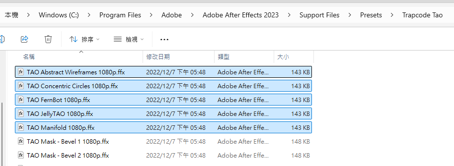 C:\Program Files\Adobe\Adobe After Effects(當前版本)\Support Files\Presets