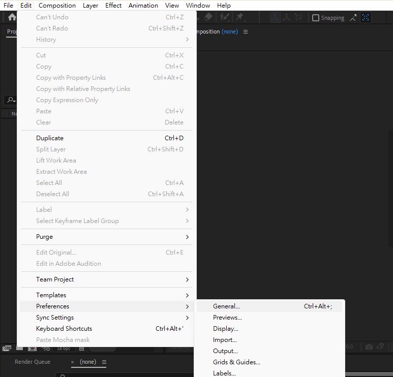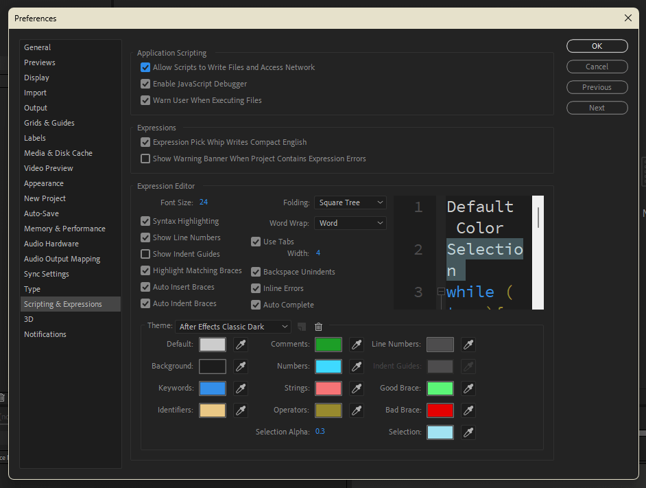 要安裝和使用 AE 腳本之前必須先到設置選項調好設定,