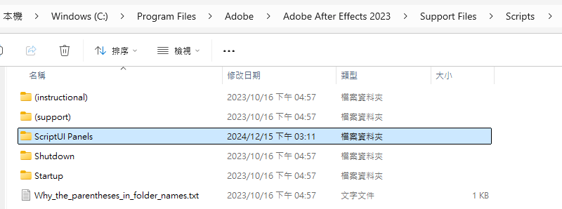 C:\Program Files\Adobe\Adobe After Effects(當前版本)\Support Files\Scripts\ScriptUI Panels