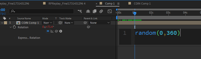 接著替硬幣的 Rotation 輸入表達式: