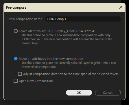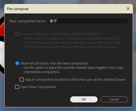 在彈出視窗中選擇 Move all attributrs into the new composition。