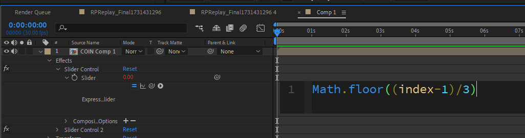 因為待會會在這個 Comp 的最上層加上一個新圖層,第一個硬幣會被推到第二圖層(index = 2),