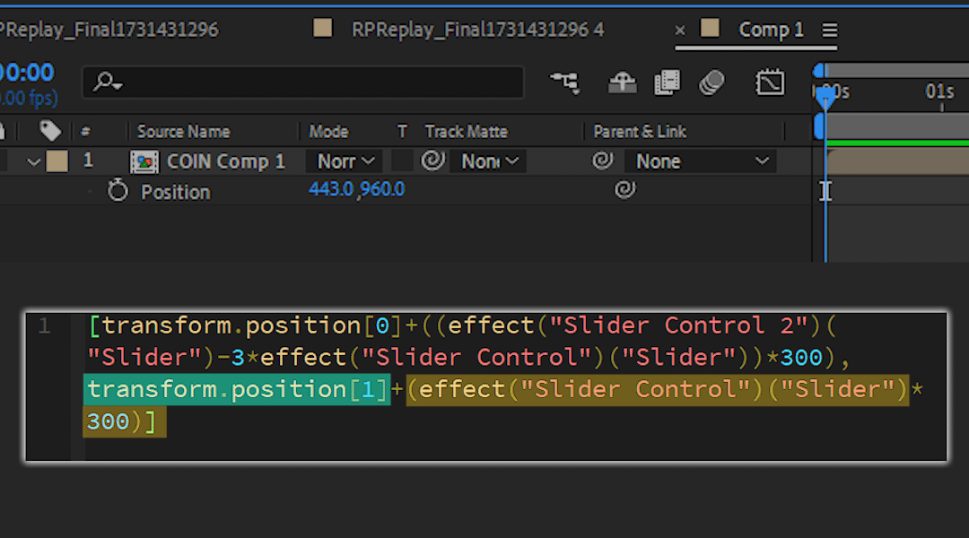 最後要替硬幣 Comp 的 Position 輸入表達式,先將內容輸入為: