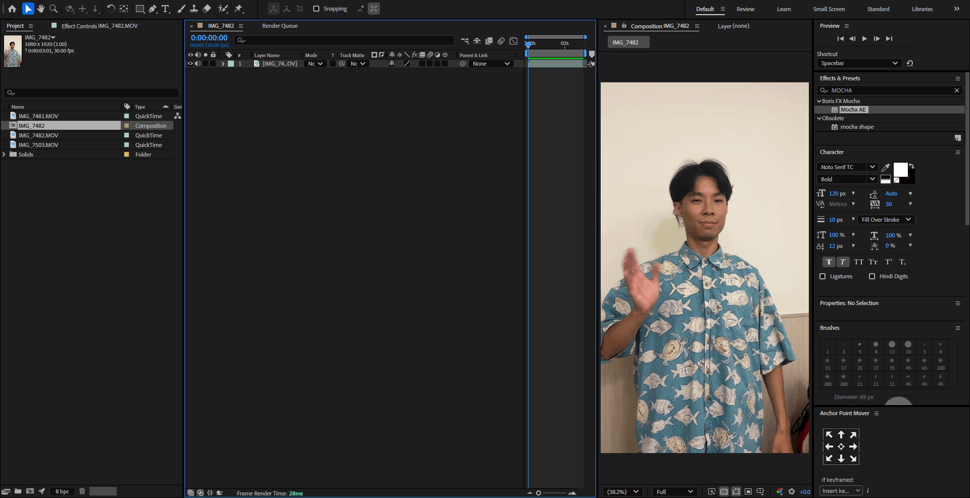 接著替原本影片素材的圖層加入 Mocha AE 效果,