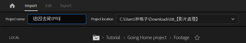 可以直接用拖曳的方式將素材拖曳到 AE 的 Project 視窗當中。