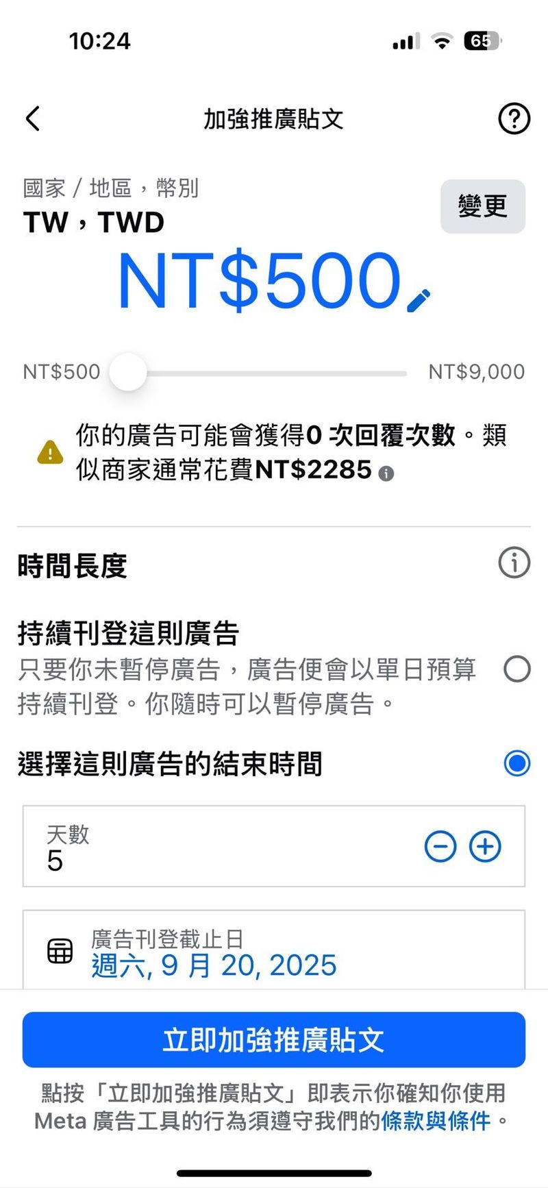 圖片說明:加強推廣貼文能調整的部分非常有限