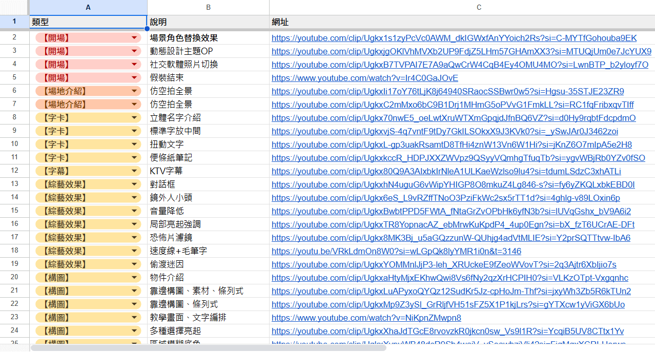 將剪輯片段的連結儲存在裡面,甚至可以給該連結去設置標籤,