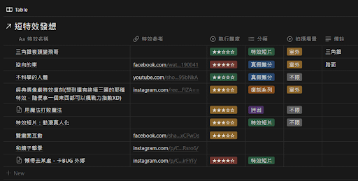 例如這裡我們使用 Notion 製作了一個靈感庫表格,