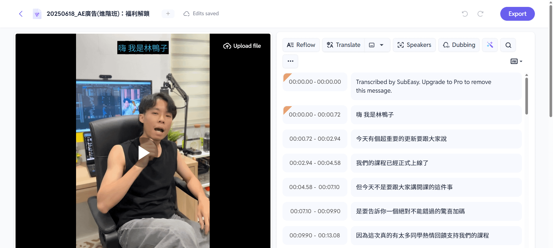 SubEasy.ai 偵測語音自動字幕