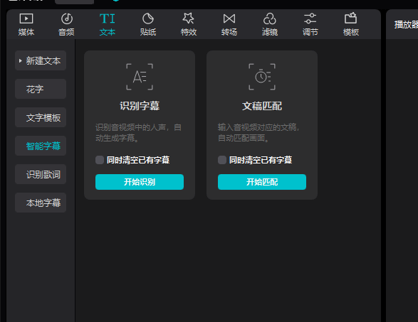 點擊上方的「文本」>「智能字幕」,