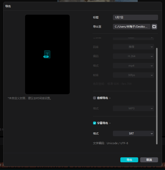 並在跳出的視窗中找到「字幕導出」的選項並勾選,