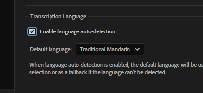 在 Transcription 中將 Default language (預設語言)設定為 Tranditional Mandarin (繁體中文),