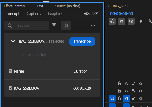 接著在 Text 視窗中的 Transcript 分頁內點擊「Transcribe」按鈕。