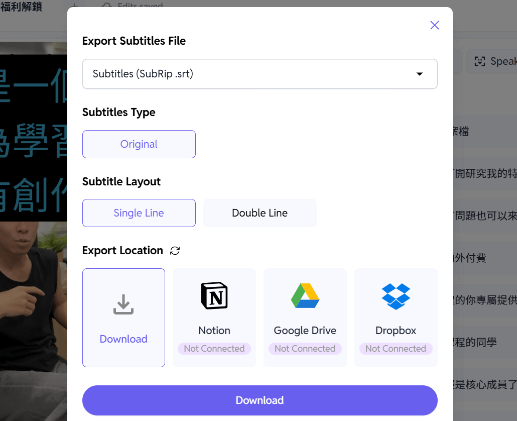 此外這個網站是支援雙軌道字幕輸出的,