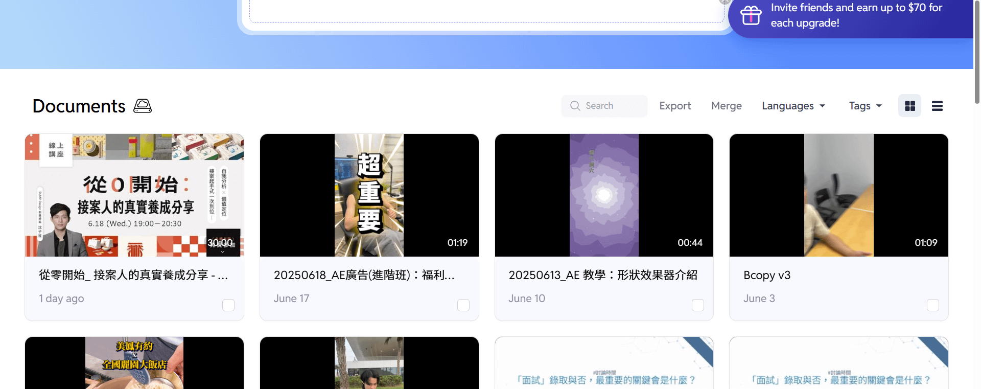 往下滑可以看到之前的專案檔,可以重複進行編輯。