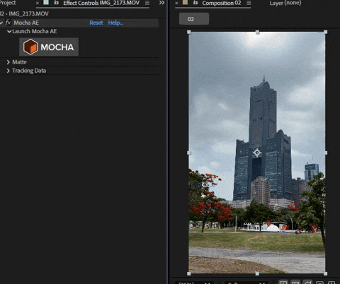 完成之後離開 Mocha AE 主介面回到 AE 當中,