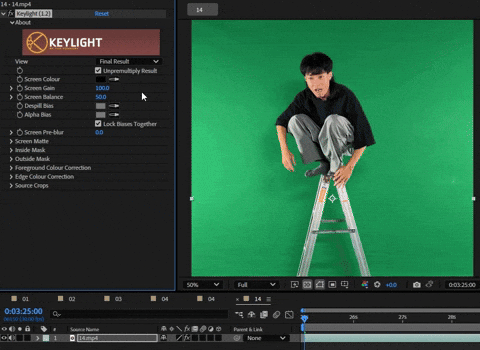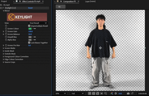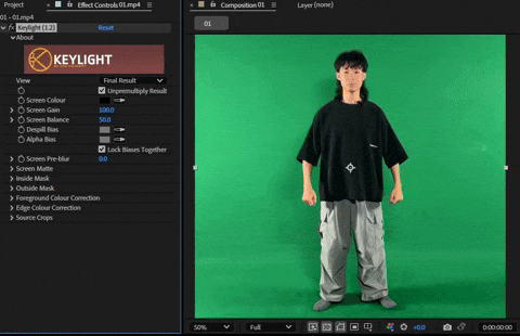 且背景是大面積純色,可以嘗試以下特效:Color Key、Keylight(1.2)、Linear Color Key。