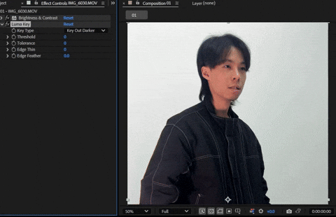 因此先試試看 Luma Key,Luma Key 可以針對較深或較淺的顏色優先把該色去除,