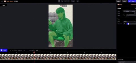 將素材上傳之後用 Green Screen 把主體大致點選出來。