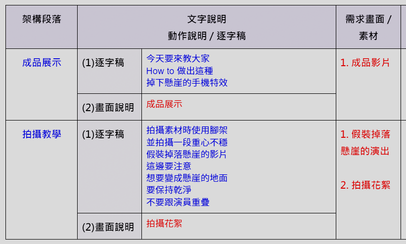 影片架構可以從開頭開始,每個段落要放什麼內容,