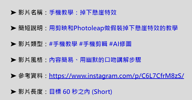 通常在規劃一支影片時可以先將影片的定位、用途列出來,