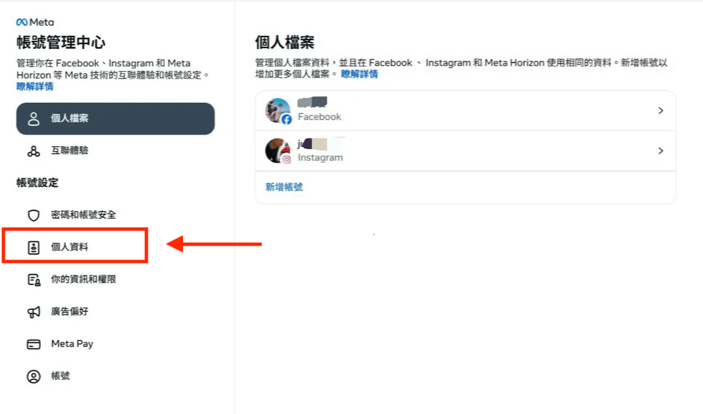 - 找到「帳號管理中心」>「個人資料」>「聯絡方式」